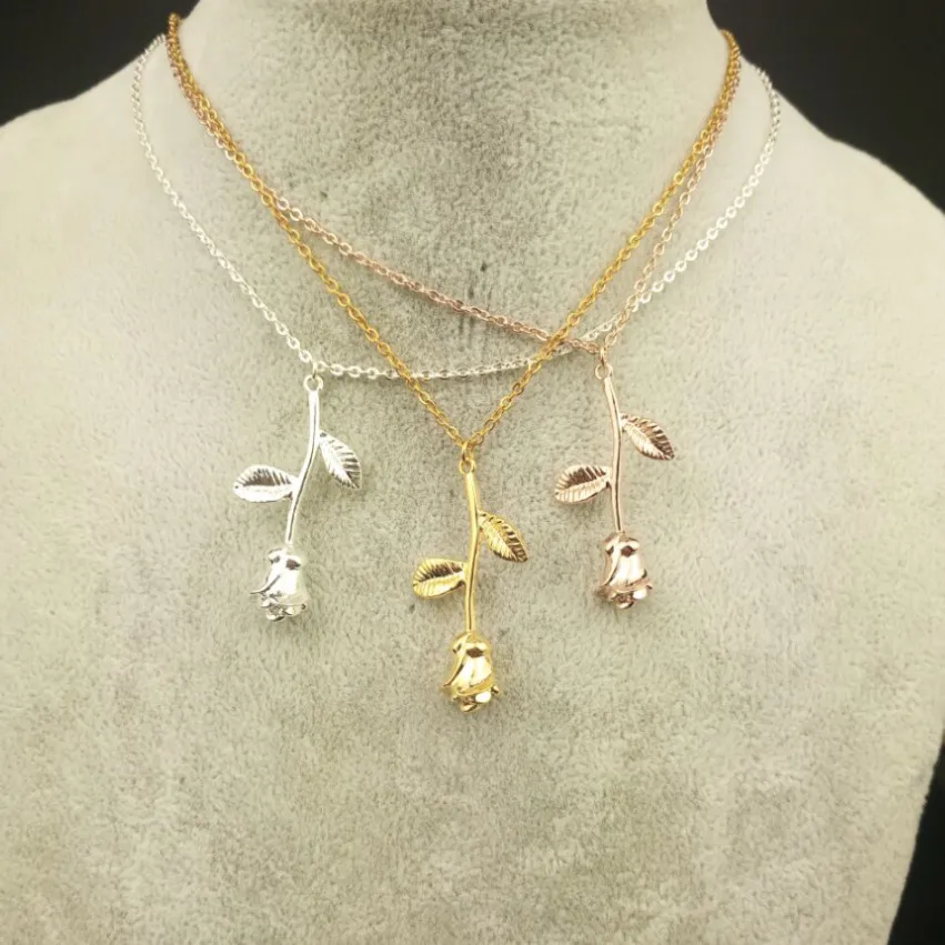 New V Attract Bijoux Femme Collier Pink Gold Rose Flower Statement Necklace Women Maxi Choker Boho Jewe
